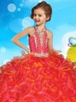 Popular Halter Top Little Girl Pageant Dress with Beading and Ruffles
