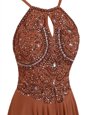 Popular Halter Top Sleeveless Zipper Mini Length Beading Dress for Prom