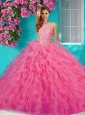 Popular Halter Top Tulle Rose Pink Quinceanera Dress with Beading and Ruffles