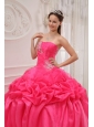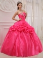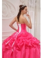 Popular Hot Pink Quinceanera Dress Strapless Organza and Taffeta Ruch and Beading Ball Gown