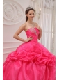 Home >  Quinceanera Dresses >  Fashionable Quinceanera Dresses > Popular Hot Pink Quinceanera Dress Strapless Organza and Taffeta Ruch and Beading Ball Gown