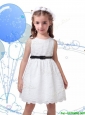 Popular Laced Scoop Little Girl Pageant Dress with Black Sashes