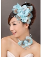 Popular Light Blue Taffeta Tulle Feather Beading Women’ s Fascinators