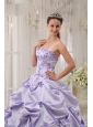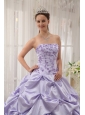 Popular Lilac Sweet 16 Dress Strapless Taffeta Appliques Ball Gown