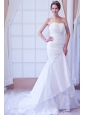 Popular Mermaid Strapless Court Train Taffeta Appliques Wedding Dress