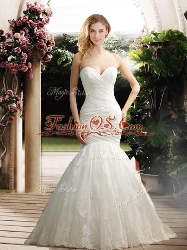 Popular Mermaid Sweetheart Wedding Dresses with Appliques and Ruching