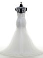 Home >  Wedding Dresses >  Elegant Wedding Dresses > Popular Mermaid White Lace Up Bridal Gown Appliques and Sashes|ribbons Sleeveless With Train Sweep Train