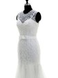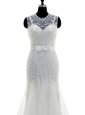 Popular Mermaid White Lace Up Bridal Gown Appliques and Sashes|ribbons Sleeveless With Train Sweep Train