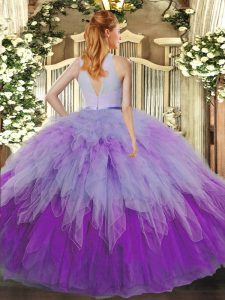 Popular Multi-color Ball Gowns Ruffles 15th Birthday Dress Backless Tulle Sleeveless Floor Length