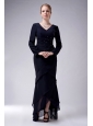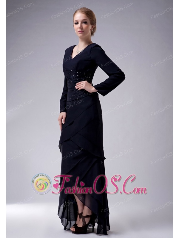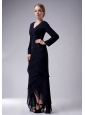 Popular Navy Blue Column V-neck Mother Of The Bride Dress High-low Chiffon Beading