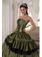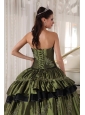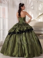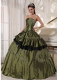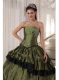 Popular Olive Quinceanera Dress Strapless Taffeta Beading Ball Gown