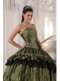 Home >  Quinceanera Dresses >  Cute Quinceanera Dresses > Popular Olive Quinceanera Dress Strapless Taffeta Beading Ball Gown