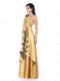 Popular One Shoulder Gold Prom Dress with Hand Made Flowers and Ruching