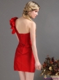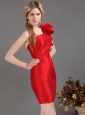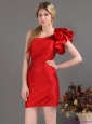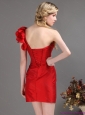 Popular One Shoulder Mini Length Red Prom Dress with Ruching