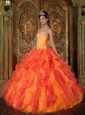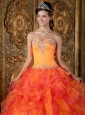 Popular Orange Quinceanera Dress Sweetheart Ruffles Organza A-Line / Princess