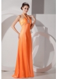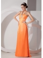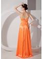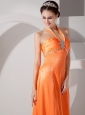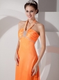 Popular Orange Red Column Halter Evening Dress Satin Beading and Ruch Floor-length