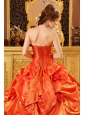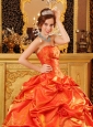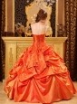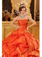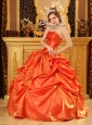 Popular Orange Red Quinceanera Dress Strapless Taffeta Handle Flowers Ball Gown