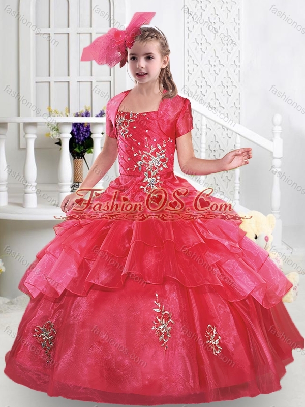 Home >  Special Occasion Dresses >  New Style Little Girl Pageant Dresses > Popular Organza Applique and Beaded Mini Quinceanera Dress in Red
