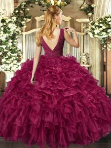 Popular Organza Sleeveless Floor Length Quinceanera Dresses and Beading and Ruffles
