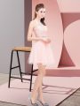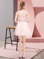 Popular Pink Lace Up Beading and Lace Sleeveless Mini Length