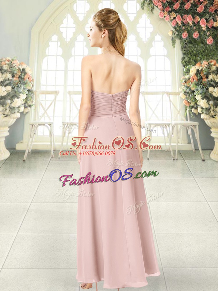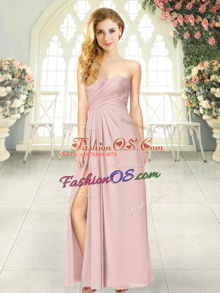Popular Pink Sleeveless Floor Length Ruching Zipper Prom Dress