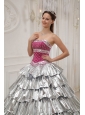 Home >  Shop By Color >  Quinceanera Dresses by Color >  Silver Quinceanera Dresses > Popular Quinceanera Dress Strapless Satin and Taffeta Beading A-line / Princess
