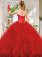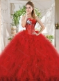 Popular Really Puffy Red Quinceanera Dress with Beading and Ruffles