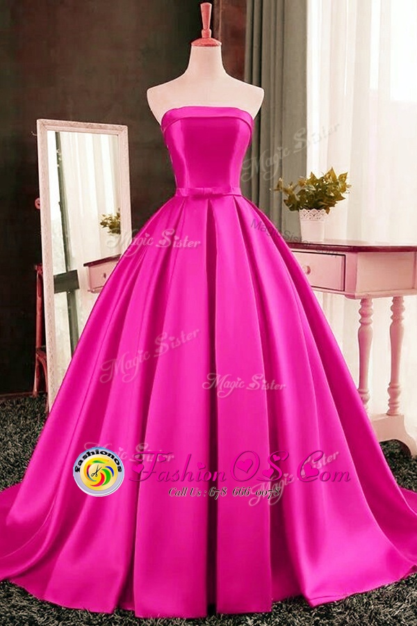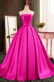 Popular Red Ball Gowns Satin Strapless Sleeveless Pleated Lace Up Homecoming Dress Sweep Train