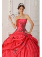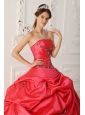 Home >  Quinceanera Dresses >  Popular Quinceanera Dresses > Popular Red Quinceanera Dress Strapless Taffeta Appliques Ball Gown