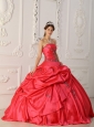 Popular Red Quinceanera Dress Strapless Taffeta Appliques Ball Gown