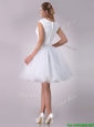 Popular Scoop Cap Sleeves Short Lace Wedding Dress in Tulle