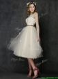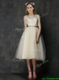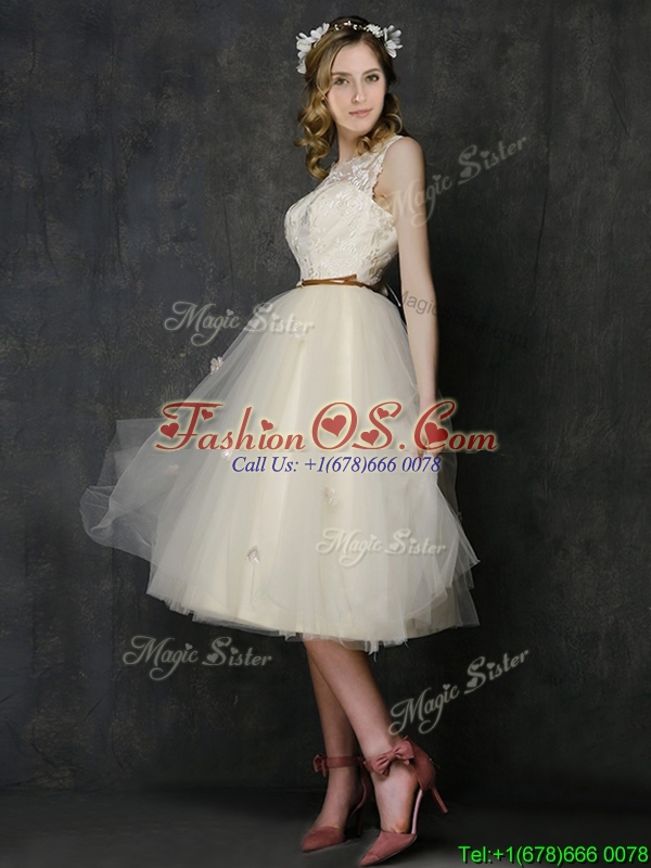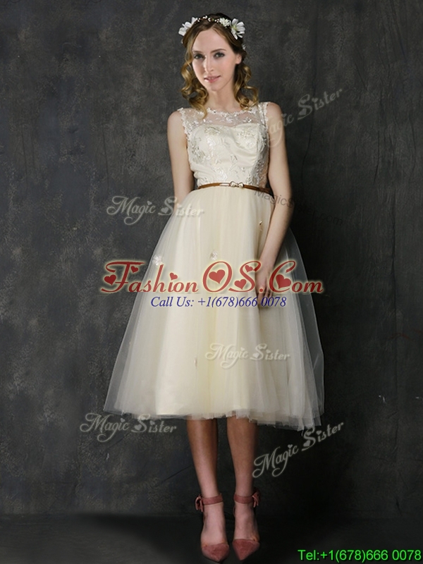 Popular Scoop Champagne Bridesmaid Dress with Sashes and Lace