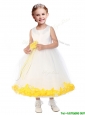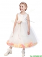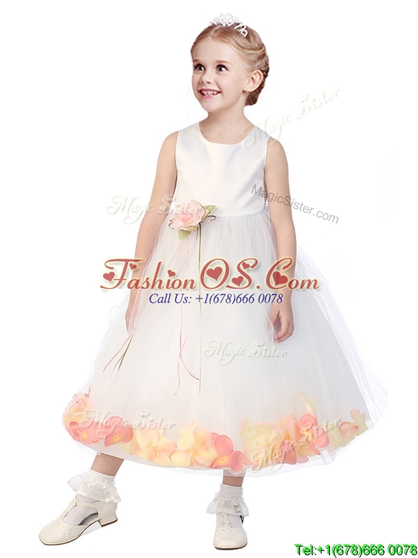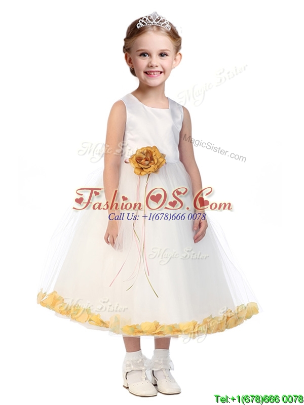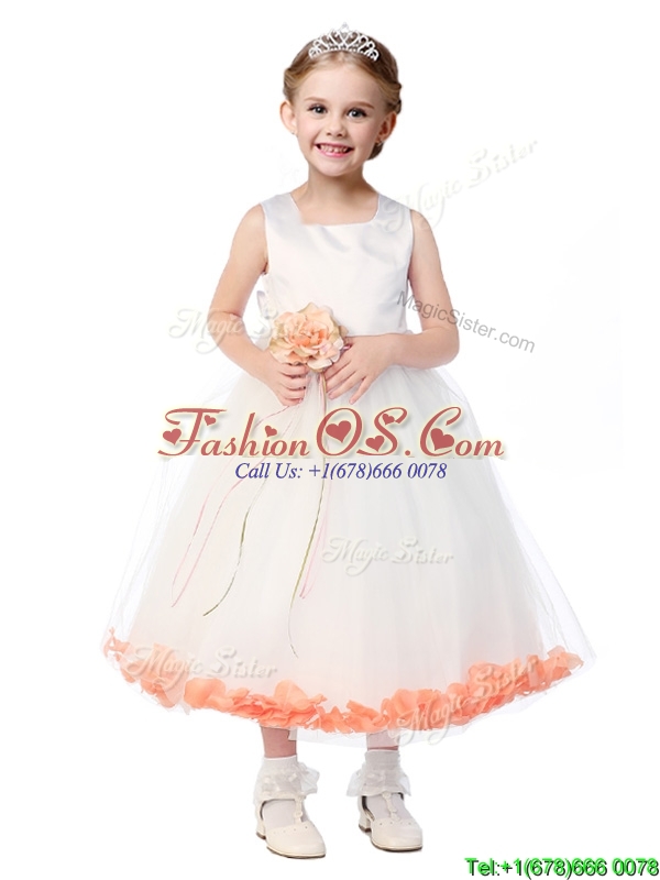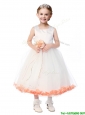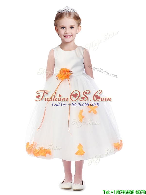 Popular Scoop Little Girl Pageant Dress with Orange Red Hand Made Flowers