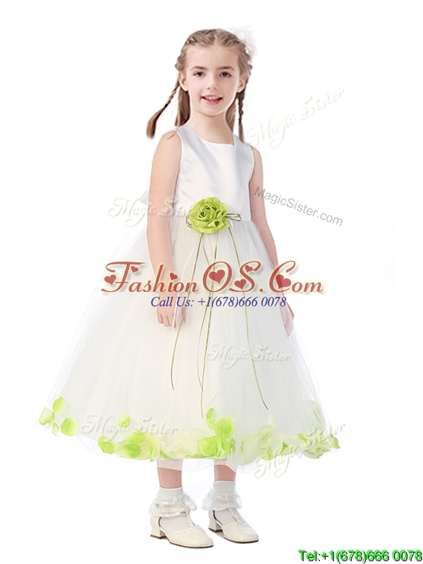 Home >  Special Occasion Dresses >  New Style Little Girl Pageant Dresses > Popular Scoop Little Girl Pageant Dress with Orange Red Hand Made Flowers