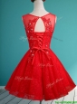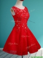 Popular Scoop Red Short Prom Dress with Beading and Appliques