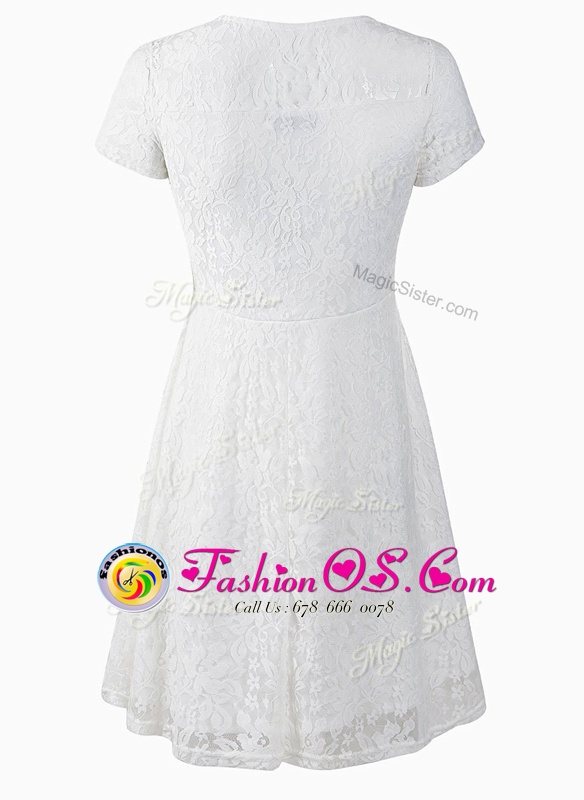 Home >  Prom Dresses >  Perfect Prom Dresses > Popular Scoop Short Sleeves Organza Tea Length Side Zipper in White for with Lace