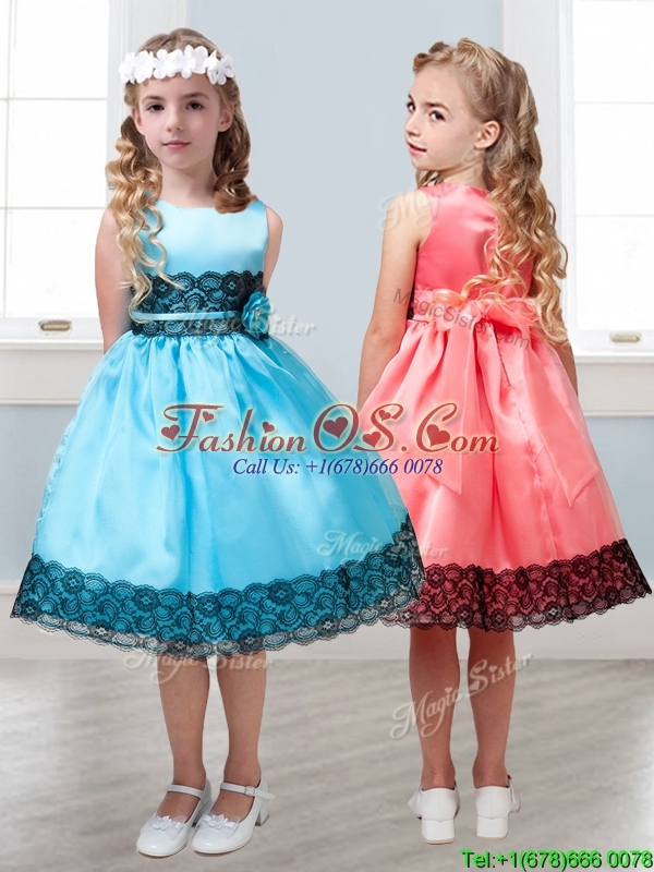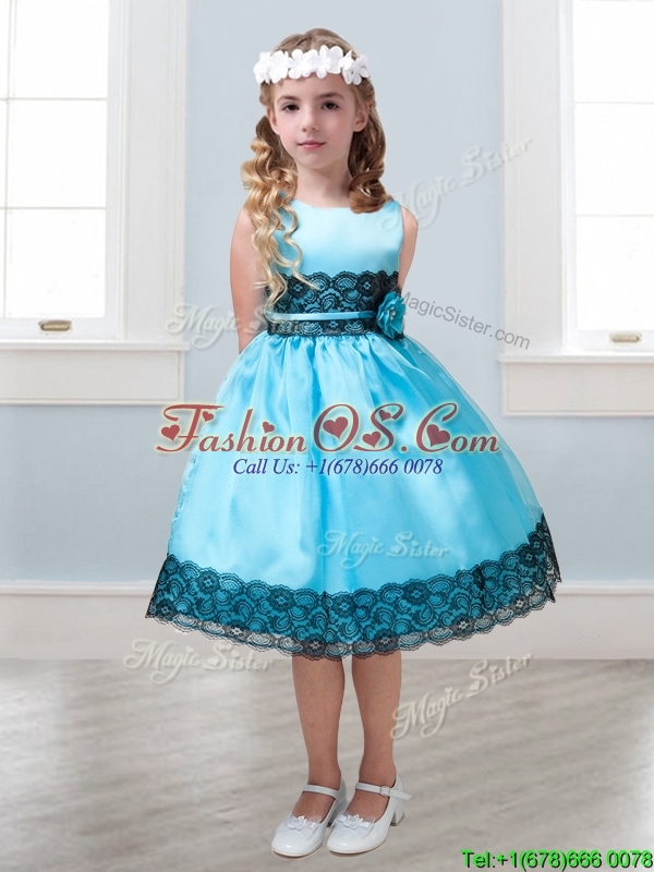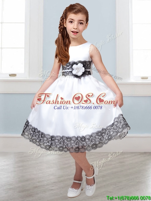 Popular Scoop White Little Girl Pageant Dress with Hand Made Flowers and Lace