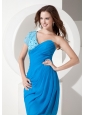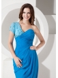 Home >  Special Occasion Dresses >  Homecoming Dresses > Popular Sky Blue Column One Shoulder Homecoming Dress Chiffon Ruch and Beading Knee-length