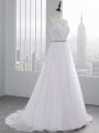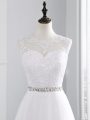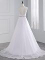 Popular Sleeveless Beading and Lace and Appliques Zipper Wedding Dresses with White Brush Train