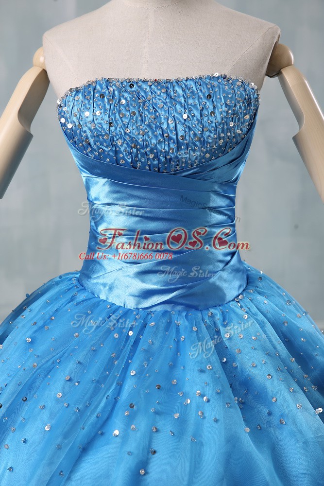 Home >  Quinceanera Dresses >  Fast Delivery Quinceanera Dresses > Popular Sleeveless Floor Length Beading and Sequins Lace Up Sweet 16 Quinceanera Dress with Baby Blue