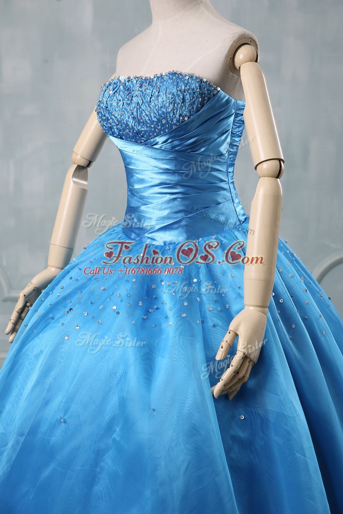 Popular Sleeveless Floor Length Beading and Sequins Lace Up Sweet 16 Quinceanera Dress with Baby Blue