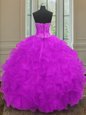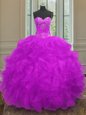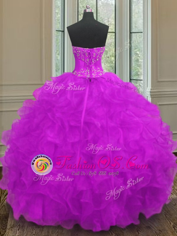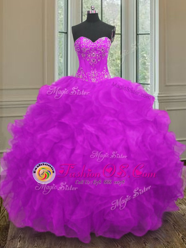 Popular Sleeveless Organza Floor Length Lace Up Quinceanera Dress in Purple for with Beading and Embroidery and Ruffles