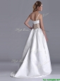 Popular Spaghetti Straps Brush Train Wedding Dress with Belt and Handmade Flowers