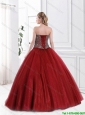 Popular Strapless Beaded Sweet 16 Gowns in Wine Red