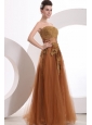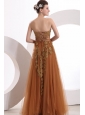 Popular Strapless Empire Floor-length Appliques Prom Dress in Brown
