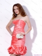 Popular Strapless Watermelon Red Prom Dress with Beadings and Ruching