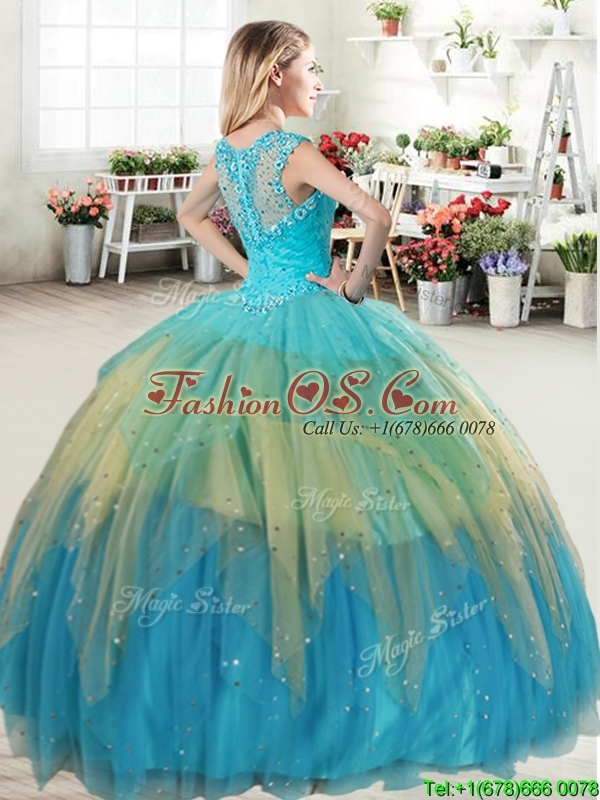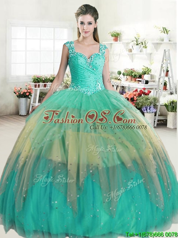 Popular Straps Rainbow Quinceanera Dress with Beading and Ruffled Layers