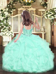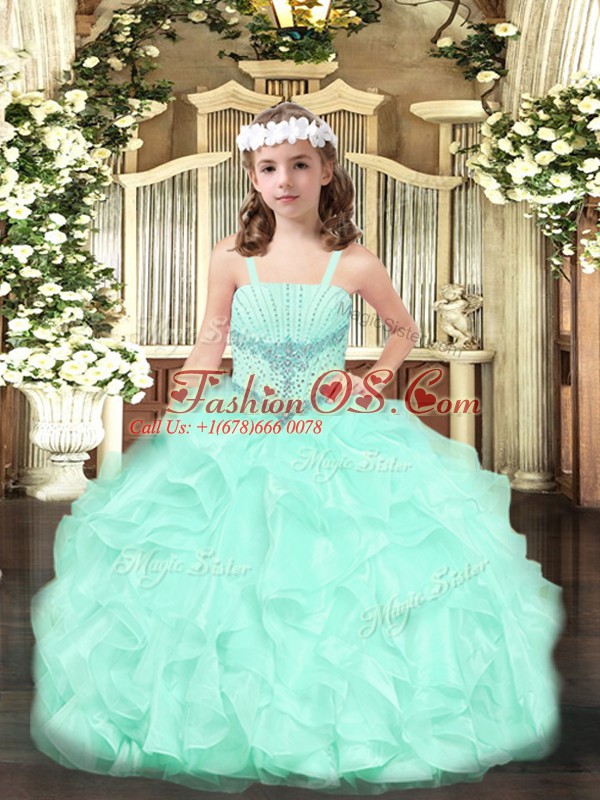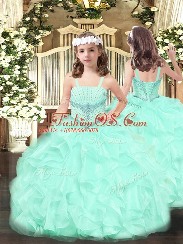 Popular Straps Sleeveless Lace Up Kids Pageant Dress Apple Green Organza
