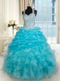 Popular Straps Sleeveless Zipper Floor Length Beading and Ruffles and Pick Ups Quinceanera Dress