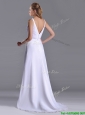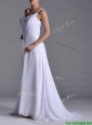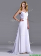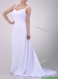 Popular Straps White Chiffon Prom Dress with Brush Train